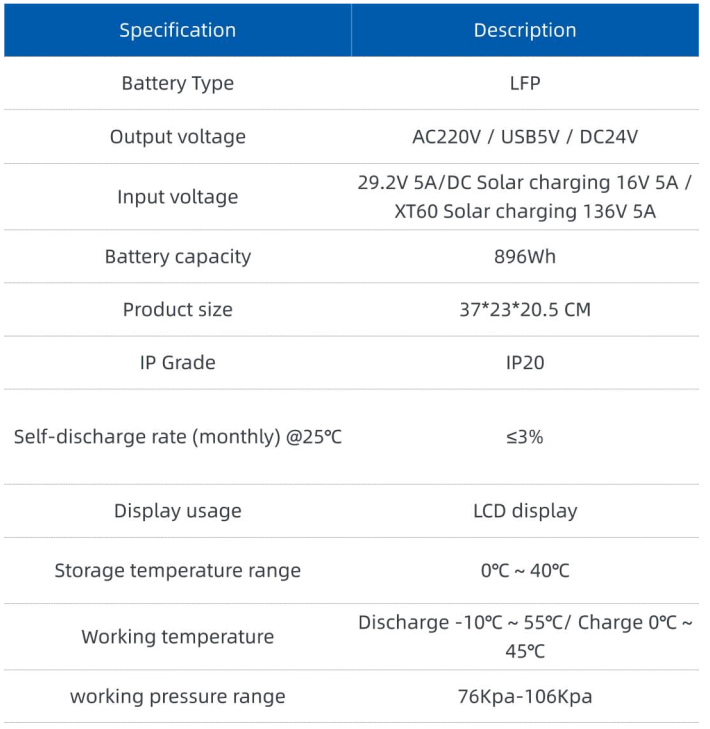 The actual use of multiple ports: The device has a 1200W pure sine wave high efficiency inverter. It features five USB ports (QC3.0) and an Type-C ports (QC3.0), perfect for charging mobile phones, cameras, and other small electronics. The power station is equipped with two DC 5521 ports that provides 24V 5A output and 29.2V 5A/36V 5A input and a XT60 port that provides 36V 15A input. The 24V 5A output is suitable for running DC-powered devices such as portable refrigerators, LED lighting, and small DC fans. The 29.2V 5A/36V 5A input allows for efficient charging of the power station through compatible solar panels or a DC adaptor. This versatile port supports seamless operation for both powering external equipment and recharging the unit itself. The 36V 15A input via the XT60 connector allows for fast charging of portable power stations or battery packs. Two universal AC outlets are suitable for small household appliances under 1200W, such as laptops, fans, or mini projectors. The device comes with a wireless charging , a cigarette lighter and also built-in LED lights (10W) for emergency lighting or camping. It comes with a 29.2V 5A charger to recharge the power station.